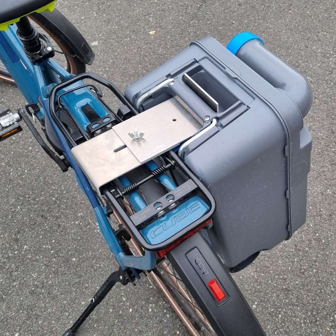 WC Kassettenhalterung für Fahrradgepäckträger, passend für fast jeden Gepäckträger und jede Kassettentoilette.